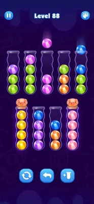 Ball Sort is an easy-to-play balls game. Your goal is to sort all color balls of the same color into one tube. Sounds simple? Think again! As you progress, the number of color ball in the ballsort puzzles will gradually increase, and you'll need to think ahead to solve these color matching games!