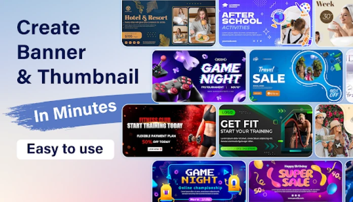 Do you want to effortlessly create thumbnails, banners, promotional posters, offer announcements, leaderboards, flyers, and cover photos for your shop, restaurant, office, or social media platforms? If so, this app is tailor-made for you.
