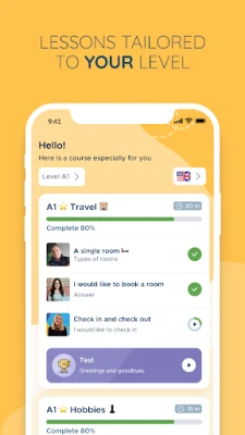 📈 All language lessons are tailored to your level - starting from A0 and ending at C1.