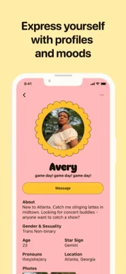 • Express Yourself: Showcase your personality with fun, colorful profiles and custom moods that help people know how you're feeling wherever they find you in the app.