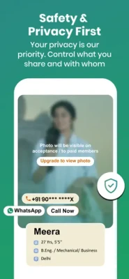 We understand your need for Safety & Privacy, in our shaadi (shadi) / matchmaking, marriage app, you control who can see your pictures, contact details & profile. With SecureConnect® feature, receive calls from prospects without revealing your mobile number.