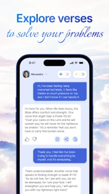 🙏 Find Solace and Guidance: During life's challenges or crossroads, discover solace, inspiration, and biblical wisdom through Bible Chat's interactive texts. Receive comforting Scripture verses, uplifting messages, and a connection to God's enduring word.