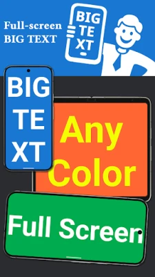Transform your device into a powerful tool for communication, focus, and relaxation. Big Text lets you display crisp, bold text or soothing solid colors on your entire screen—ideal for presentations, accessibility, visual aids, and more.