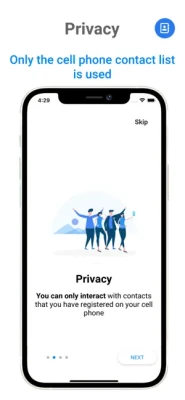 * PRIVACY: Only contacts that you have registered on your cell phone can see your publications and chat.