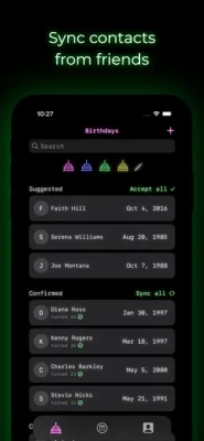 Suggested Birthdays: Suggested birthdays from your friends' contact lists.