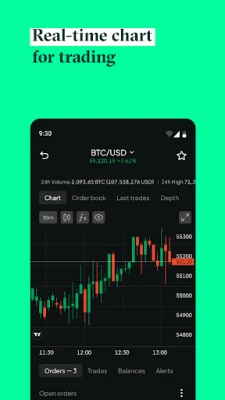 * Access to real-time market insights, including order book, last trades, market depth, and charts for all assets