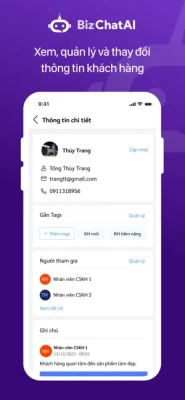 - Quản lý thông tin của khách hàng: Các thông tin như Email, Số điện thoại, Thẻ tags, Nhân viên chăm sóc sẽ liên tục được update khi xem Thông tin khách hàng