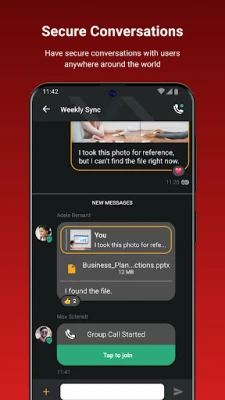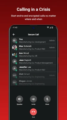 • Secure group voice calls with an existing group, or create a new group with those you need to speak with now