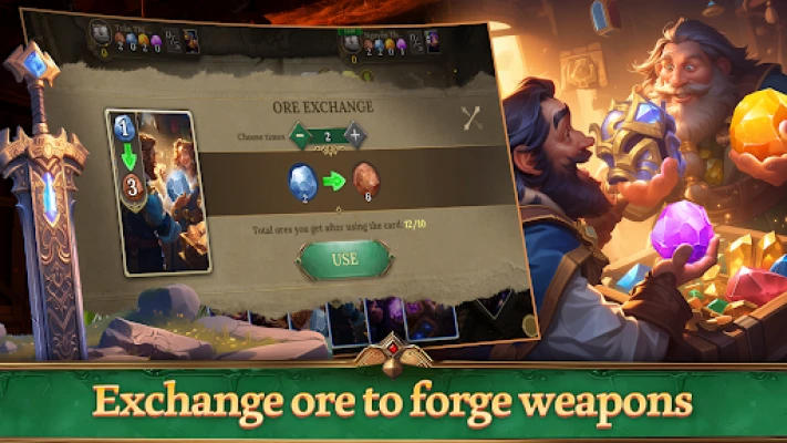 🔥 Strategic Gameplay: Use your ores in a strategic way, the equipment with the more points cost more expensive ores which are harder to upgrade. At the same time, manage your turns to collect ores that suit your next moves.