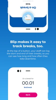 Blip makes it easy to track breaks, too. At the tap of a button, your staff can log the start and end of their breaks, so you can see how long and how often they take downtime.