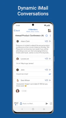 Streamline your organizational messaging with a single tap away to switch between your emails and chats. Interact via teams and direct messages in real-time. The organization contacts are smartly integrated so you can see who is available. Blix takes the best of Blue Mail, a world class email service used by millions of people worldwide, and weaves in iMail to create a super-charged platform.