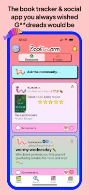 Bookworm Reads is a book tracker & joyful community app. On Bookworm, you can track your books, see what your friends are reading, rate, review, and discuss books, create and join book clubs, and be a part of a vibrant digital community of readers.