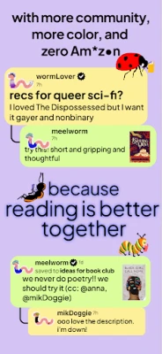 Create, organize, and join book clubs. Find like-minded readers and host discussions in the app. You can create collaborative shelves, where everyone in the club can add to your shared to-read shelf, or you can do the choosing and let readers to follow along. Get started by joining Thee Bookworm Book Club--the Bookworm-wide club.