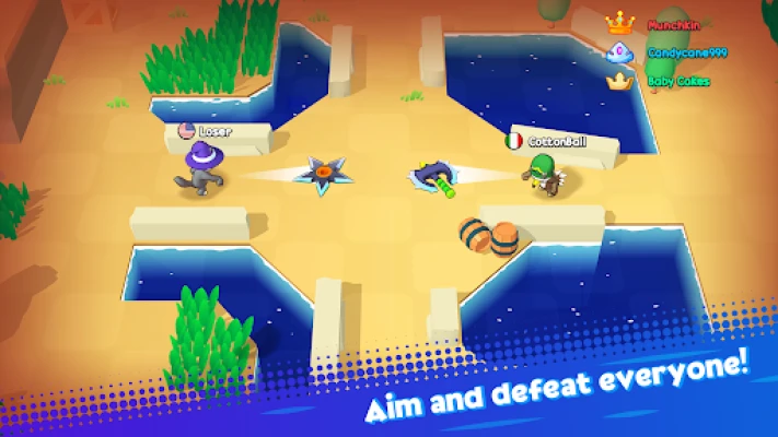 Join the Boomerang Tournament, where you toss boomerangs and shurikens, and survive as the last player standing. Brawl with friends and see who becomes the king of this battle royale io game!