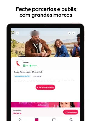 Não importa o tamanho da sua audiência, aqui você tem a oportunidade de trabalhar com grandes marcas e participar de campanhas relevantes. Receba produtos, participe de publis e ganhe por engajamento, tudo de forma prática e transparente.