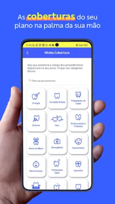 De maneira rápida e prática você poderá realizar o acompanhamento do seu reembolso, buscar o dentista mais próximo da sua localização, utilizar o seu cartão de identificação na versão digital, realizar uma teleorientação com um dentista on-line, consultar dicas de saúde bucal e verificar os canais de comunicação que também estão à sua disposição.