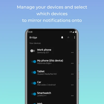 For Android devices, simply install the Bridge app on all the devices you want to ‘Bridge’ together, and select the devices you want to mirror notifications to and from.