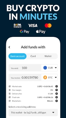 Buy BTC, ETH and 30 other cryptos in minutes, by bank transfer, card or Google Pay. We always show you a fully transparent price with low fees and zero hidden costs.