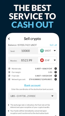 Sell crypto from your phone at any time and withdraw funds in 19 fiat currencies on your bank account in 171 countries. We've successfully cashed out more than $500 million in more than 500 banks around the world!