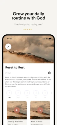 Sleep: Experience restful sleep with exclusive prayers and soothing music designed to bring God’s peace into your night. Wake up refreshed and aware of God’s presence.