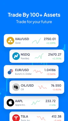 Comprehensive Asset Selection: Trade a wide range of assets including Stocks & Indices (Tesla, Amazon, S&P 500, NASDAQ), Metals (Gold, Silver), Commodities (Brent Oil), Forex (EURUSD, USDJPY, GBPUSD), ETFs, and more.