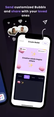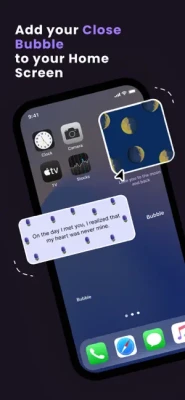 Bubbl is a widget that shows live text feeds from your best friends, right to your Home Screen. You and your best friends will see each other's thoughts & statuses every time you unlock your phone. It’s a little glimpse of what everyone’s up to throughout the day.