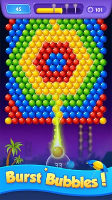 Work Smart: Make sure to aim well so your bubble will land exactly where you want it. 🌲🌲Drop the big groups of balls first so you can clear a path to victory and become the bubble shooting hero.