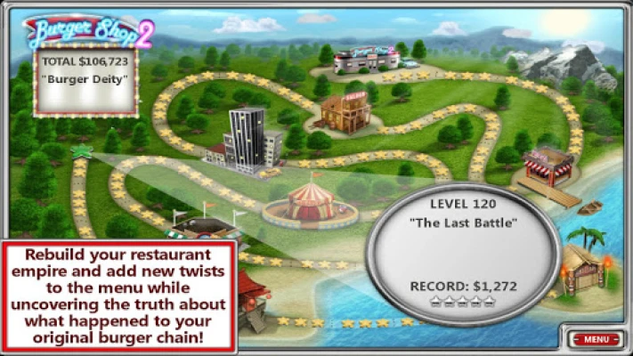 • Story Mode - Rebuild your restaurant empire, and solve the mystery of who or what destroyed your original burger chain.