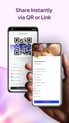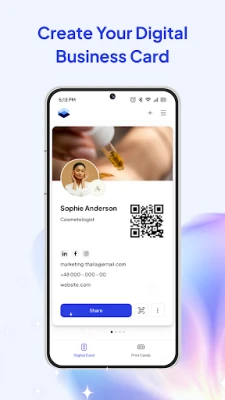 ⢠Digital Cards: Share your card instantly via QR code or link.