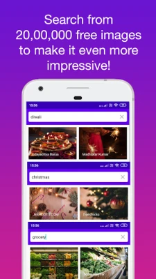 You can pick the images from your Gallery or click via Camera and also we have provided the entire image/picture archive, so you can search easily and choose your favourite image from lakhs of pictures available in the app to make your graphic/post even more attractive.