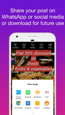 If you are into small business or entrepreneur or shopkeeper or businessman, this app is perfect suited for you to create beautiful, inspirational, promotional, sales/discount posts and share with your customers/clients, promote your product and services and increase your sales.