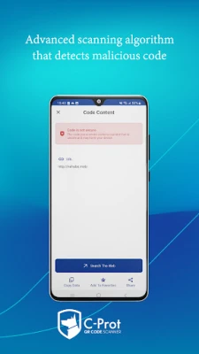 C-Prot QR Code Scanner protects your device from malicious URLs embedded in QR or barcode codes. It offers high quality URL security checks on all QR and barcode codes, allowing you to be redirected to a secure website free of scams, malware and dangerous content.