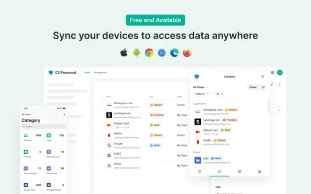 C2 Password lets you sync your credentials across an unlimited number of devices and access them from anywhere via the web portal, app, and browser extension.