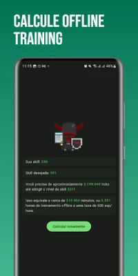 - Offline Training: Calculates time to level up skills offline.