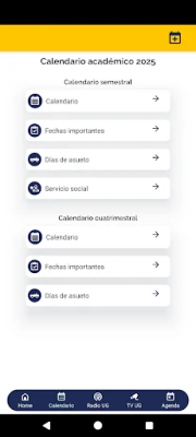 Accede fácilmente a nuestro calendario académico para no perderte ninguna fecha importante, disfruta de Radio UG para estar al tanto de las últimas noticias y eventos, y sintoniza TV UG para ver programas y contenidos exclusivos. ¡Explora, aprende y disfruta de tu experiencia universitaria al máximo!