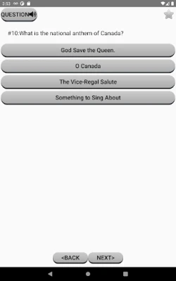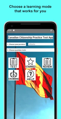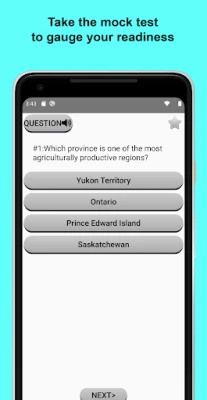 Features: -3 different practice modes (Test, Review, and Cramming) -pronounce all questions in English -pronounce all answers in English -different questions based on your selected province/territory