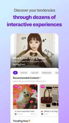 • Instead, naturally explore yourself across six dimensions—inner self, appearance, relationships, experiences, roles, and potential—through a variety of quizzes and tests.