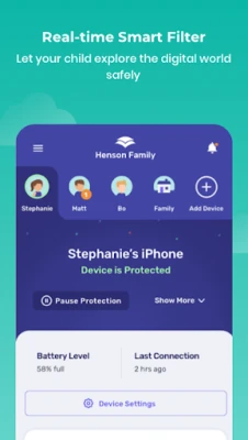 Monitors the camera on your child’s device, prevents them from sharing inappropriate photos, and notifies you immediately if a risky photo is detected
