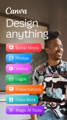 Canva is your free photo editor, logo maker, collage maker, and video editor in one editing app! Design digital art faster with powerful magic AI tools built-in, like the AI image generator that allows you to transform text to image in just a few minutes Make stunning social media posts and reels, presentations or flyers, create logos, CVs, photo collages and video collages from customizable templates.