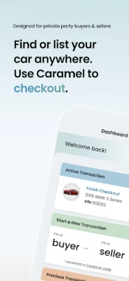 Caramel is designed for private party buyers & sellers. Buyers can find the used car they want to buy anywhere and sellers can list their used car for sale anywhere. Then use Caramel for the sale. We handle all of your DMV work and paperwork, transfer payment securely and verify the other party is who they say they are.