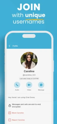 ChatDome offers a unique blend of anonymity, security, and social features, including text, voice, and video calls, allowing you to express yourself freely and connect with others in safe & judgment-free environments. We believe in laughing freely, sharing boldly, and genuinely connecting without revealing your identity.