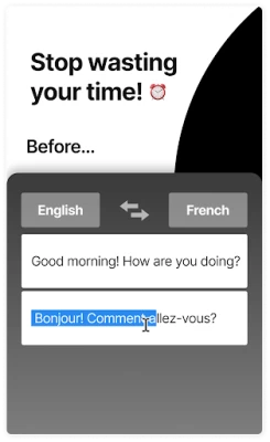 Communicate with businesses, and other professionals more easily, without the awkwardness of having to check a translator for every message.