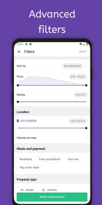 • Sorting options: Sort results by price, popularity, rating or proximity to the city center.