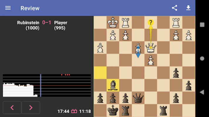 ● Automatic blunder check: After the end of the game you can review your game, which is already checked for errors by a powerful chess engine.