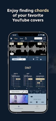 Chord ai listens to the music played from your device, from any video/audio streaming service or played live around you, and detects the chords instantly. Then it shows you the finger positions to play the song on your Guitar, Piano or Ukulele.
