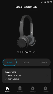 The Cisco Headsets app provides a simple way to configure and customize your headset for an exceptional experience. Easily adjust equalizer settings, configure features, and discover all that your headset offers.