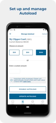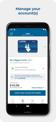 The Clipper app gives you the same account access as the website, but on your phone! You can register a new card, load cash value and transit passes, set up Autoload, view your recent activity, and other features. You can also manage multiple Clipper cards in one place.