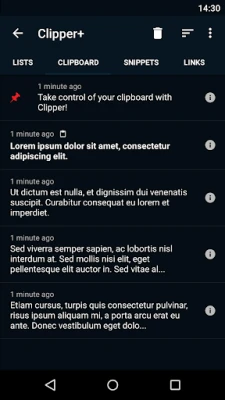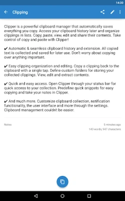 ✔ Quick and easy access. Open Clipper through your status bar for quick access to your collection. Predefine quick snippets for easy copying and take your notes in Clipper.