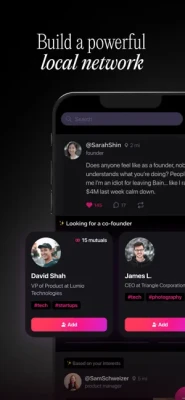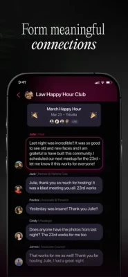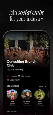 We’re an exclusive localized network made for the next generation of professionals. Meet ambitious people in your area at thousands of curated private social clubs, mixers, galas, and more. Find your dream cofounder at a brunch club, unlock access to the hottest rooftop mixers, and see what everyone in your industry is talking about.