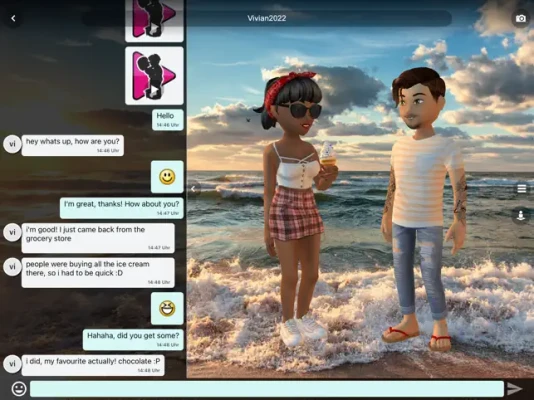 • Chat with friends and use 3D emojis to dance close together, hug or just do nonsense.